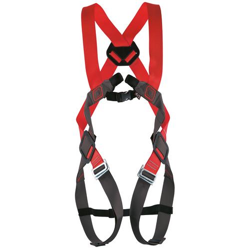 Volledig lichaamsharnas met dubbele aanhechtingspunten voor valbeveiliging: één sternaalaanhechting (dubbele textiellus) en één dorsale stalen D-ring. Specifiek ontwikkeld voor de bouw, industrie, besloten ruimtes en hoogwerkers. Vervaardigd uit 100% polyester bandmateriaal, met verstelbare gespen en elastische liesband. Materiaallussen maken het eenvoudig meenemen van gereedschap mogelijk. Geschikt voor gebruik door professionals tot 150 kg. Voldoet aan EN 358:2008 en EN 361:2002.