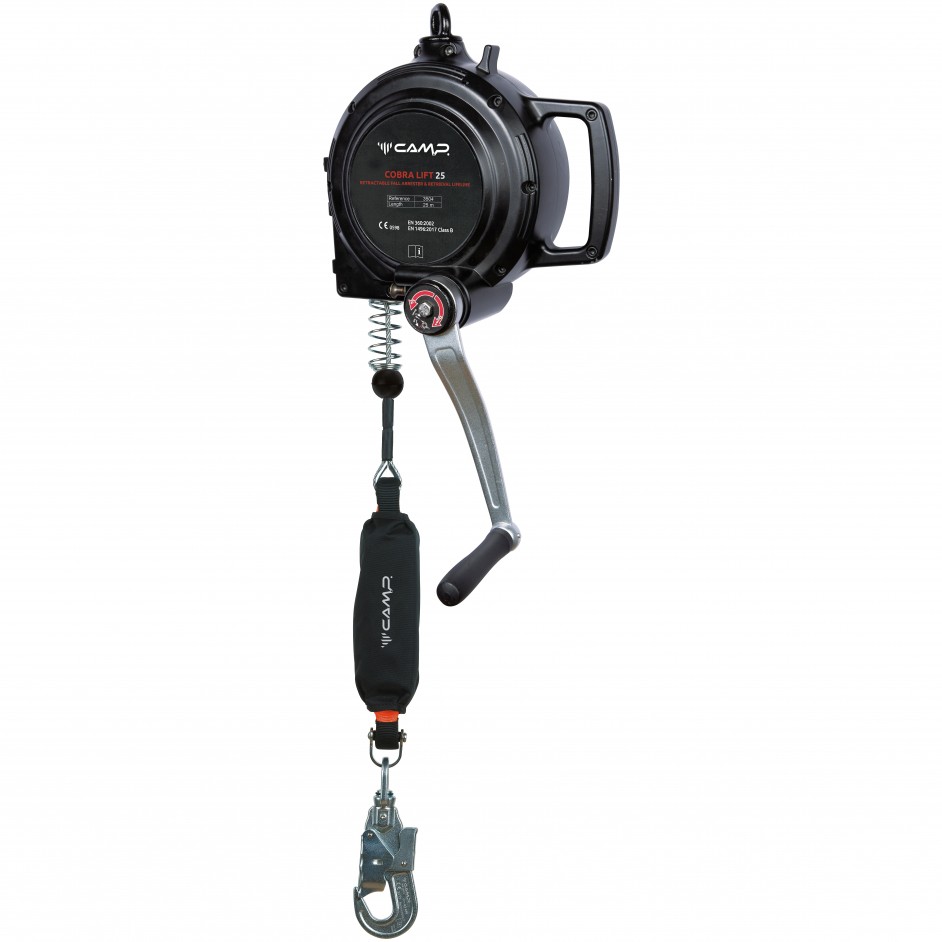 De CAMP Cobra Lift is een automatische valstop- en reddingslier, ontworpen voor professioneel gebruik in reddingssituaties en valbescherming. Geschikt voor gebruik door één persoon per keer. De Cobra Lift is te combineren met de Tripos statiefopstelling en is optimaal inzetbaar voor hijs-, afdaling- of evacuatiemomenten waarbij directe veiligheid en efficiënte werking vereist zijn. Gecertificeerd volgens EN 360:2002 (valstopapparaat), EN 1496 (reddingslier) en EN 795:2012/B (ankerpunt).