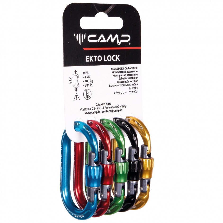 De CAMP Ekto Lock is een schroefkarabiner ontworpen voor professioneel gebruik waarbij maximale duurzaamheid en prestaties gevraagd worden. Deze compacte accessoire karabiner is ideaal voor niet-veiligheidskritische toepassingen binnen bijvoorbeeld rope access, industrie en bouw. De constructie uit 7075 aluminium legering garandeert een hoge sterkte (4 kN) met een minimaal gewicht. De gladde, minimalistische vorm voorkomt onnodig blijven haken aan materialen. Let op: de Ekto Lock mag nooit als leeflijnkarabiner of bij valbeveiliging worden gebruikt.