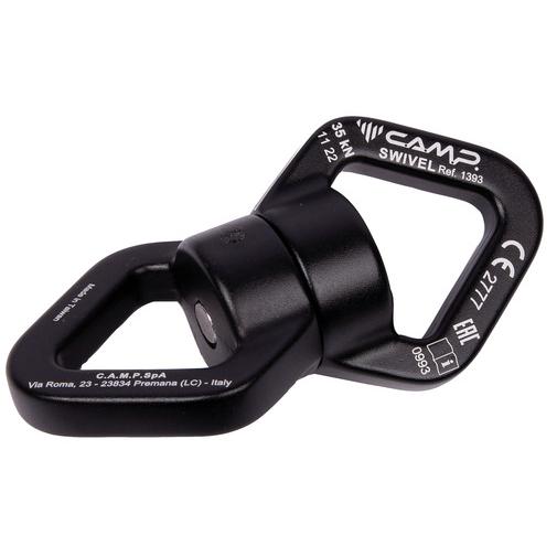 De CAMP Swivel is een hoogwaardig aluminium draaikoppeling ontwikkeld voor professioneel gebruik binnen de valbeveiligingssector, rope access, bergsport en industriële toepassingen. Dit product voorkomt het torderen van touwen en verbindingselementen en biedt zo extra veiligheid en gebruiksgemak bij reddingswerk, werken op hoogte, alpinisme en sportklimmen. De Swivel is uitsluitend bedoeld voor gebruik door getrainde, competente personen en voldoet aan essentiële normeringen zoals EN 362 (koppelingen voor valbeveiliging) en EN 12275 (alpinisme). De Swivel kan ingezet worden in een valbeveiligingssysteem in combinatie met een schokdemper (EN 355) en koppelingen (EN 362), maar mag nooit als enige valstop worden gebruikt.