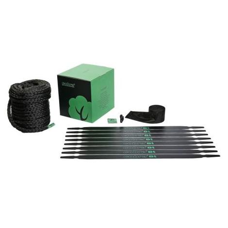 Het 4 system-package Cobra 8T bestaat uit alle componenten die benodigd zijn voor vier dynamische boomverankeringen. Dit touwsystem is ontworpen voor professioneel boombeheer en wordt voornamelijk gebruikt voor het zekeren van zware takken en stammen (diameter 60–80 cm) volgens de Duitse norm ‘ZTV Baumpflege’. De set voldoet aan een minimale systeemtrekkracht van 8 ton gedurende 8 jaar. Naast dynamische toepassingen kan het, zonder schokdemper, ook als statische verankering worden ingezet voor takken van 40–60 cm; bij dubbele installatie zelfs tot 80 cm diameter. Het pakket is compleet en installatie vereist enkel een schaar (niet meegeleverd).