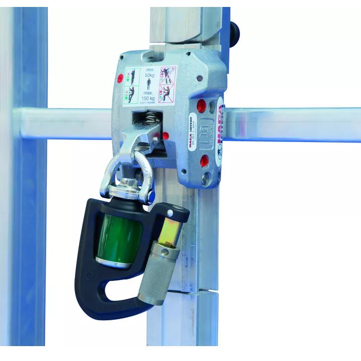 De HACA MultiSafe is een geavanceerd valstopapparaat voor gebruik op HACA railsystemen, specifiek ontworpen voor professioneel gebruik in de industrie, bouw en rope access. Dankzij drie onafhankelijke vangfuncties biedt dit systeem maximale veiligheid tijdens verticale en horizontale verplaatsingen langs rails. De MultiSafe is geschikt voor personen van 40 tot 150 kg en voorzien van een geïntegreerd dempingselement dat na een val weer in oorspronkelijke vorm terugkeert. De karabiner is uitgerust met TRI SAFE sluiting en een wartel voor optimale bewegingsvrijheid. Certificering volgens EN 353-1:2018, ANSI/ASSE 2359.1-2007 en CSA Z259.2.4-15.