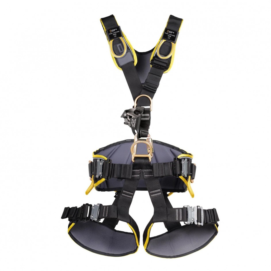 Onder de ventrale D-ring is ruimte voor bijv. de Petzl Ring Open om zo meer ruimte te creëren voor cowtails/leeflijnen