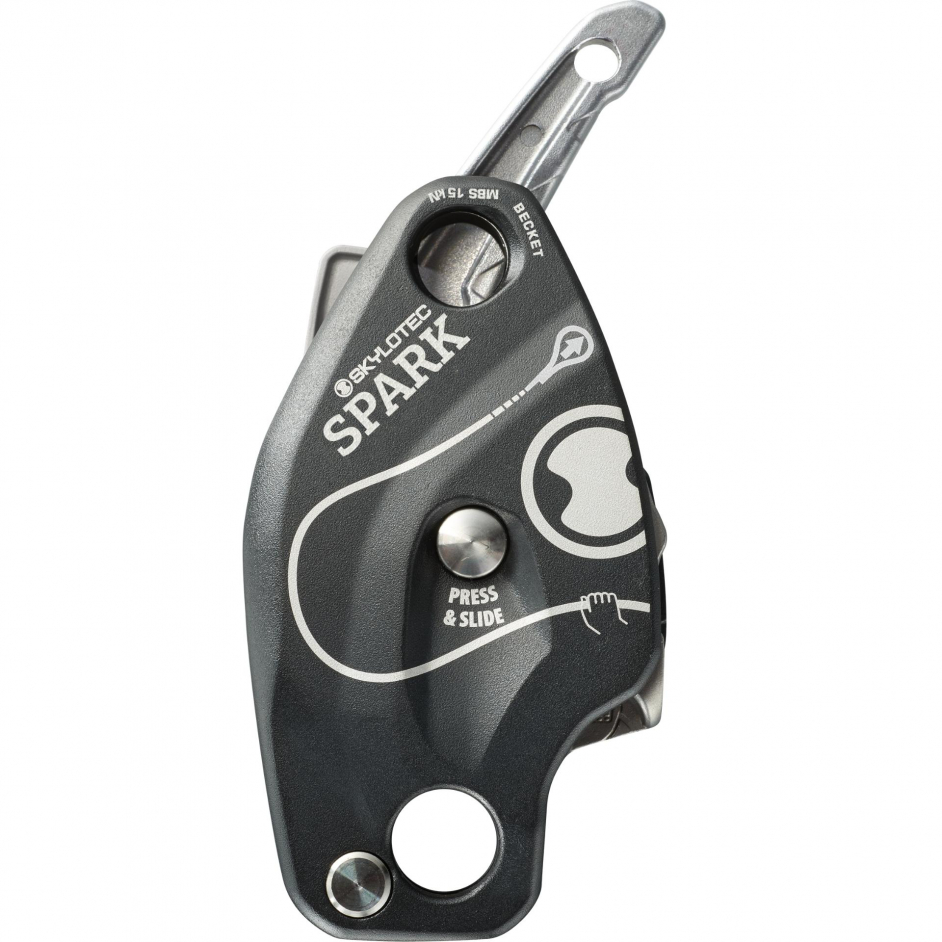 De Spark is -in tegenstelling tot de Skylotec Sirius- niet voorzien van een anti paniek functie waardoor een snelle en constante afdaling mogelijk is. Dankzij de mobiele flank blijft de Spark tijdens bijvoorbeeld een touwwissel met de klimgordel verbonden waardoor het laten vallen van het afdaalapparaat wordt voorkomen.