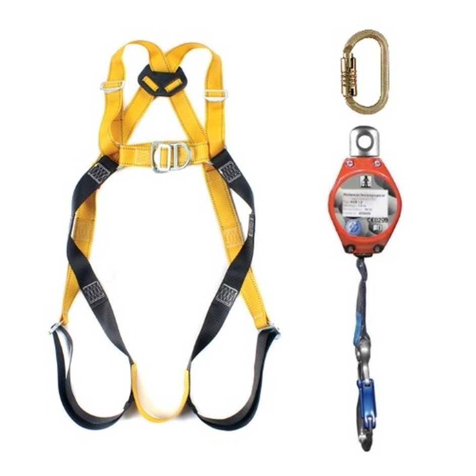 Complete set voor het gebruik in hoogwerkers, schaarliften etc. De set bestaat uit een antival-harnas met valblok welke speciaal ontworpen is voor het gebruik in hoogwerkers.