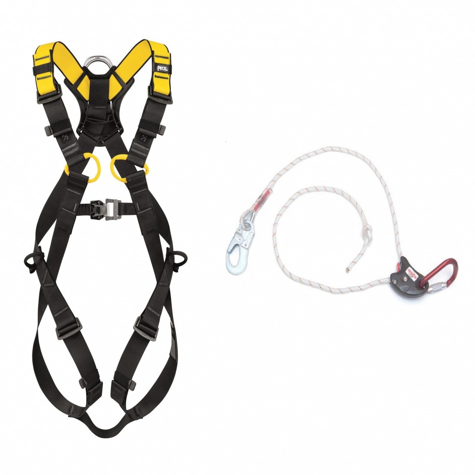 De set is verkrijgbaar in een standaard uitvoering waarbij de Petzl Newton wordt geleverd. Dit is een basismodel met een borst- en rugpunt t.b.v. uw valbeveiliging. Deze variant is niet voorzien van snelsluitingen. De andere optie is de 'comfort' uitvoering met de Petzl Newon Easyfit. Deze grodel is verkrijgbaar in 2 maten, voorzien van snelsluitingen, beschikt over een geïntegreerd jack waardoor de gordel makkelijker aantrekt en heeft ook een borst- en rugpunt t.b.v. uw valbeveiliging.