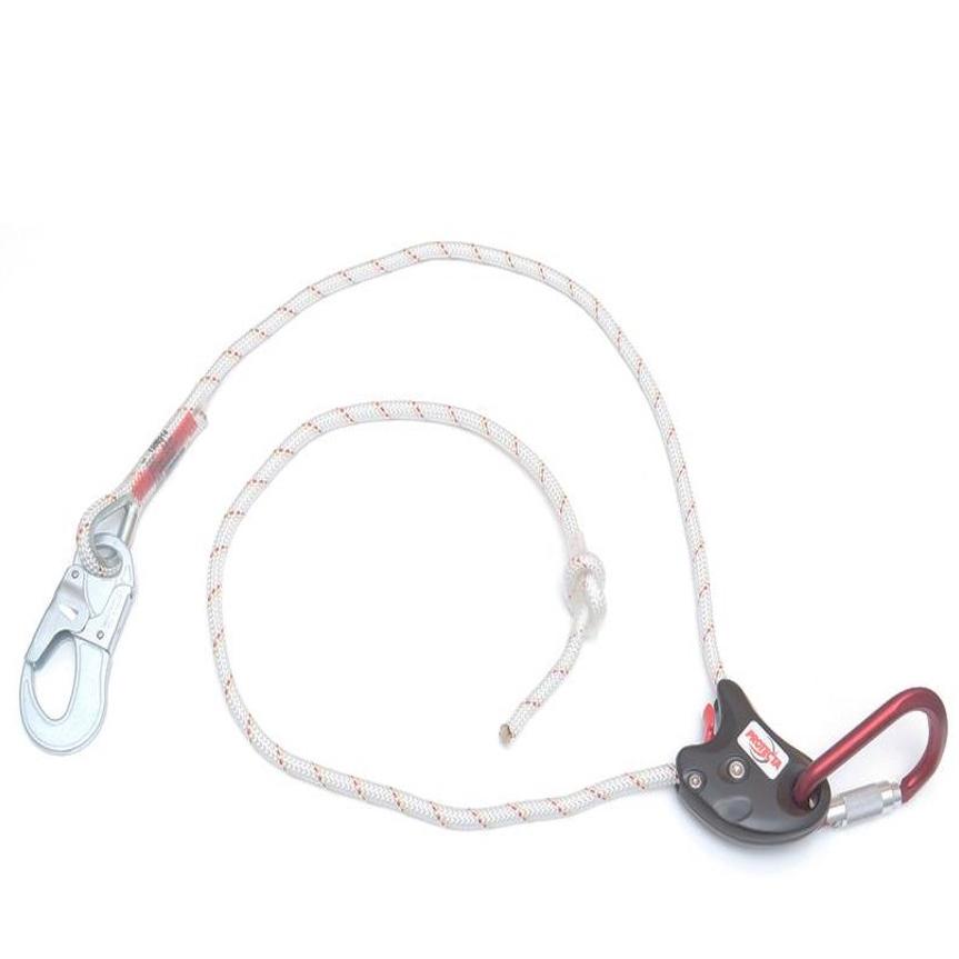 De snaphook heeft een kleine opening en is bedoeld voor bevestiging terug aan het harnas of aan een compact ankerpunt