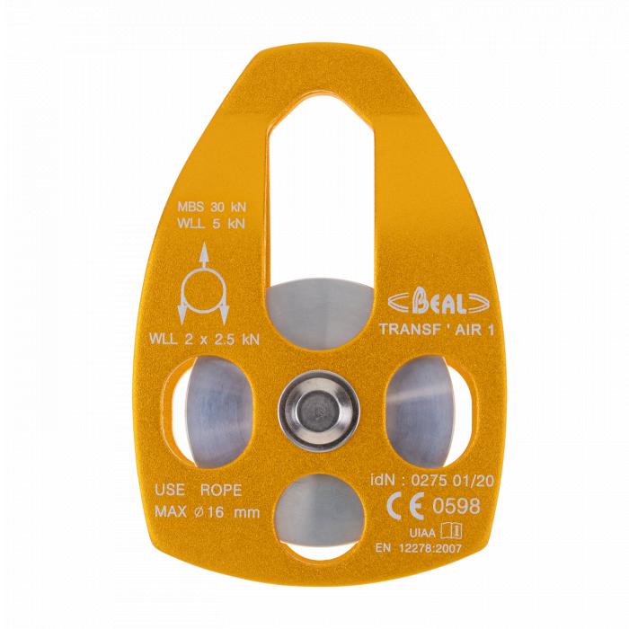 De Beal Transfair 1 is een aluminium katrol met mobiele flanken. Door de grote en brede schijf loopt het touw soepel door het syteem en is de Transfair geschikt voor touwen met een diameter van 1 tot maximaal 16 mm.