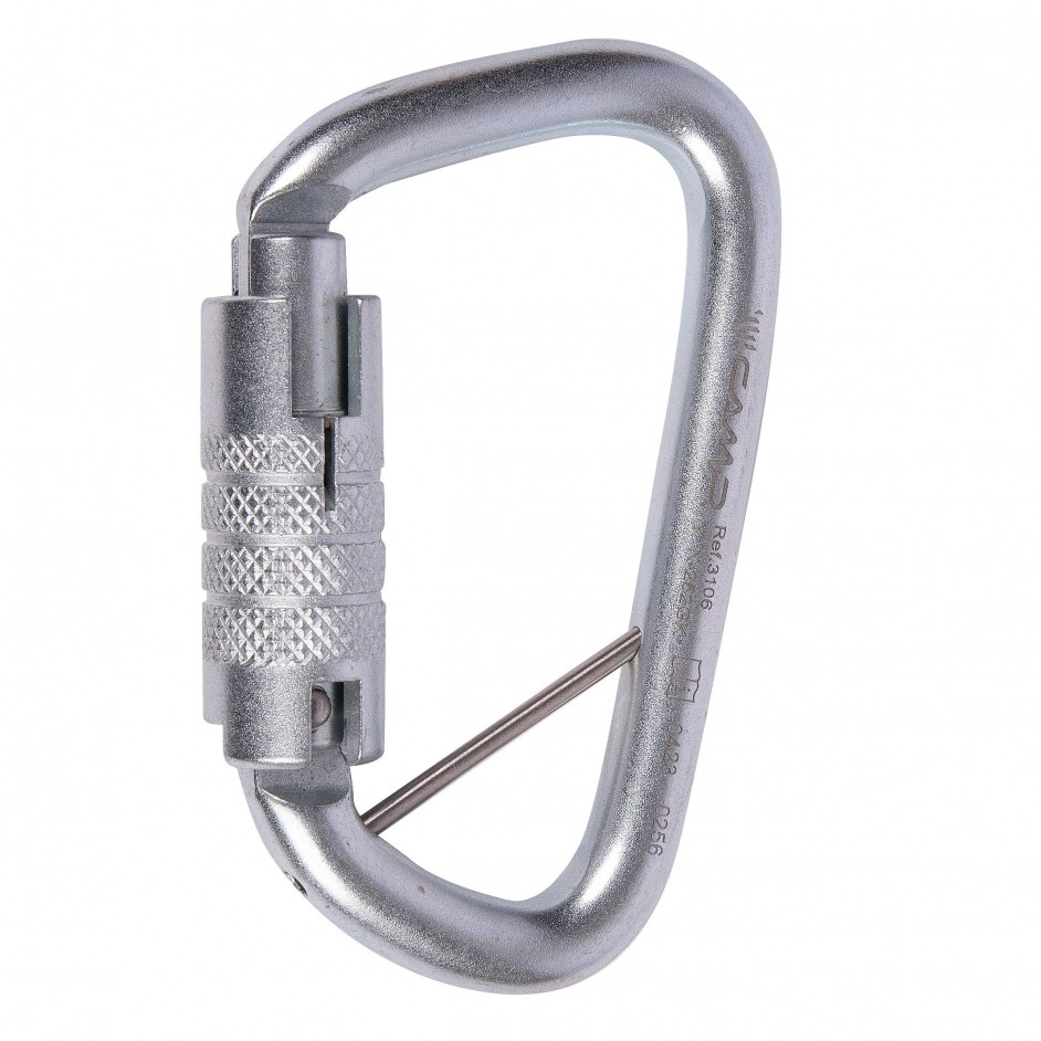 Mousqueton en D robuste avec verrouillage automatique triact et broche anti-rotation amovible. Adapté aux systèmes connexes pour le matériel d’escalade industriel et les applications de positionnement. Le système Keylock empêche tout accrochage involontaire sur le textile ou le métal. Certifié EN 362 et ANSI Z359.12. Résistance maximale : longueur 41 kN, largeur 16 kN. Ouverture : 19 mm. Poids : 252 g.
