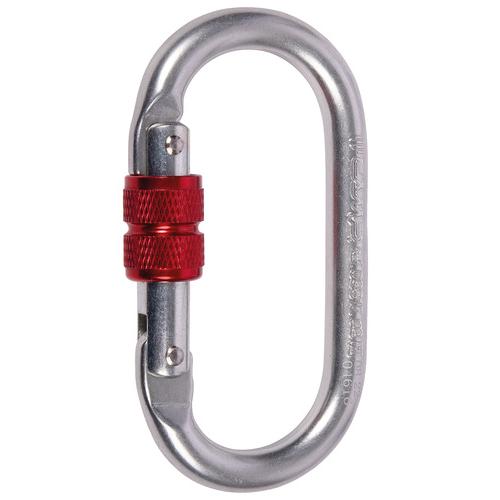 Mousqueton ovale à vis en acier, conçu comme moyen de connexion robuste pour une utilisation professionnelle dans les systèmes de protection contre les chutes, de maintien en position de travail et de sauvetage. Convient à l'industrie, à l'accès par corde et aux applications techniques d'escalade qui exigent durabilité et fiabilité. Conforme aux normes EN 362:2004/B et EAC, avec des spécifications claires pour une utilisation dans des systèmes de sécurité individuels.