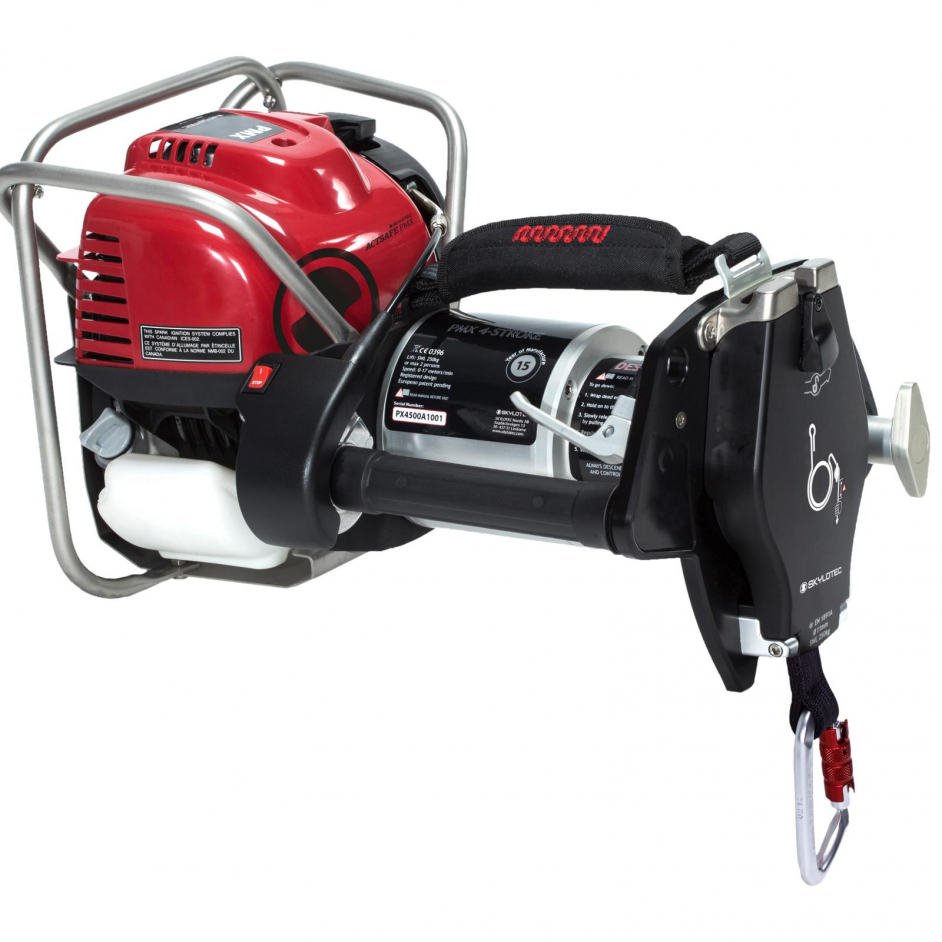 Contrairement au Skylotec ActSafe ACX, le PMX est alimenté par un moteur à essence. Cela rend l'appareil compact, puissant et léger, avec un poids de seulement 13 kg. Un PMX avec un réservoir plein peut déplacer au moins 700 mètres de corde.