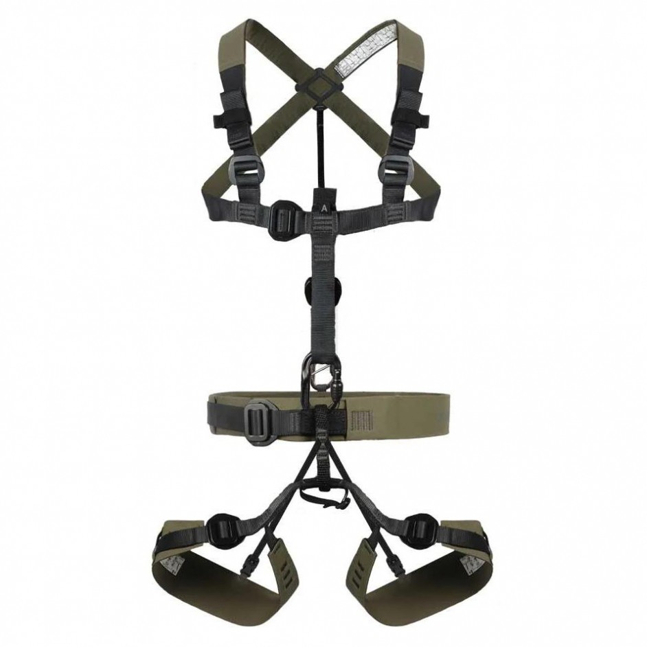 Het harnas heeft een ultra-low profile ontwerp met bonded vari-width webbing, zodat het comfortabel onder een plate carrier gedragen kan worden. De constructie integreert volledig met andere ‘on the man’-systemen zoals life jackets en plate carriers. Wanneer een chest ascender nodig is, neemt het verbindingssysteem volgens de fabrikant minimale ruimte in aan de voorzijde van de drager.
