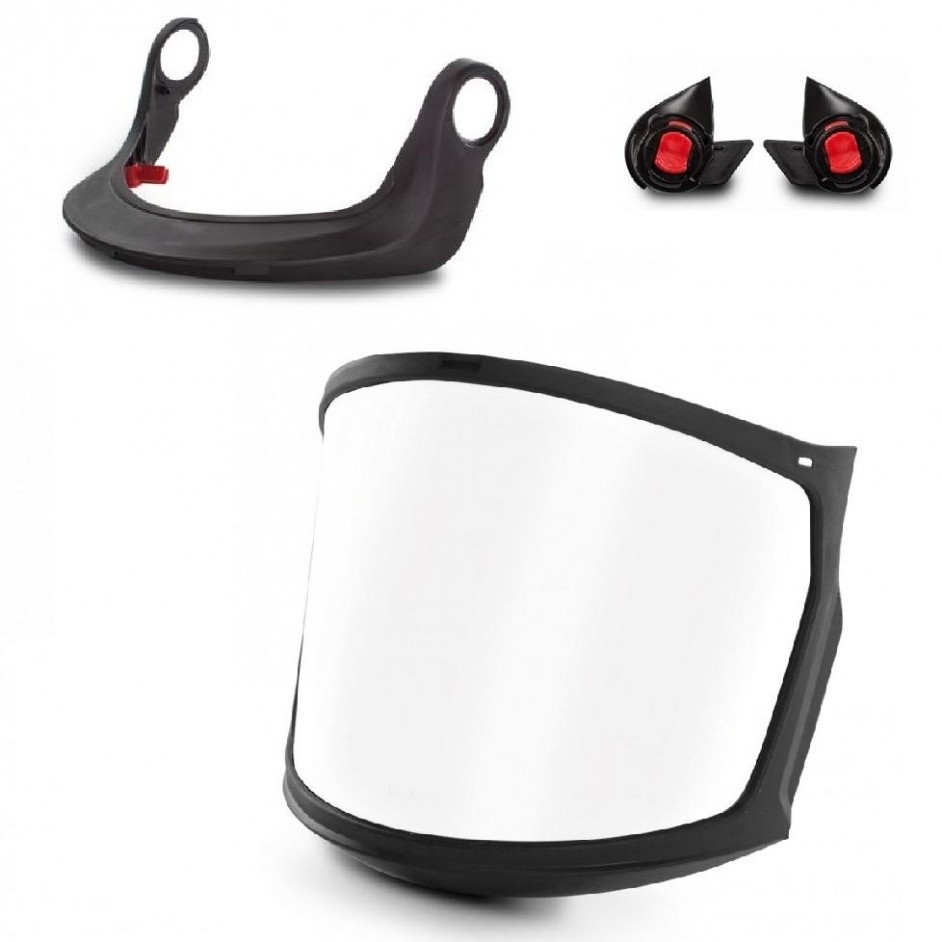 Het vizier is gemaakt van Polycarbonaat en heeft een behandeling gekregen waardoor het gelaatsscherm minder snel aanslaat (anti-fog). Daarnaast is het vizier voorzien van een krasbestendige laag om de levensduur te verlengen.