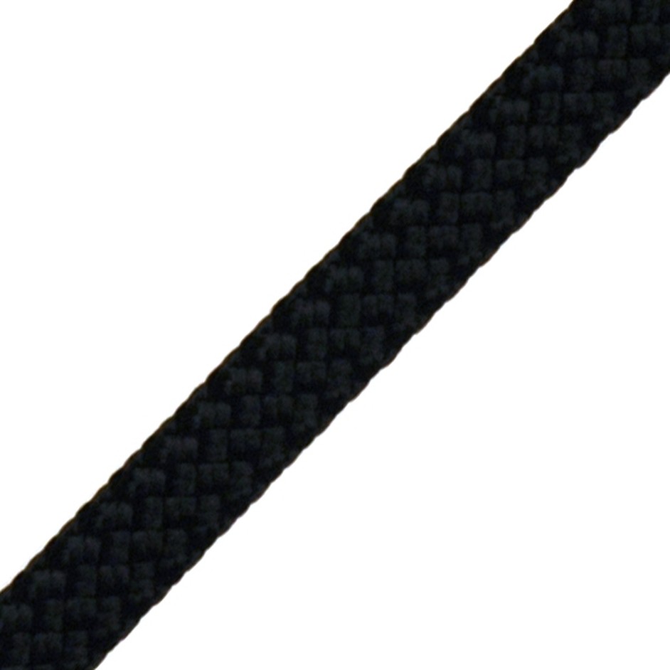 Robuust zwart polyester hijstouw met een diameter van 12mm
