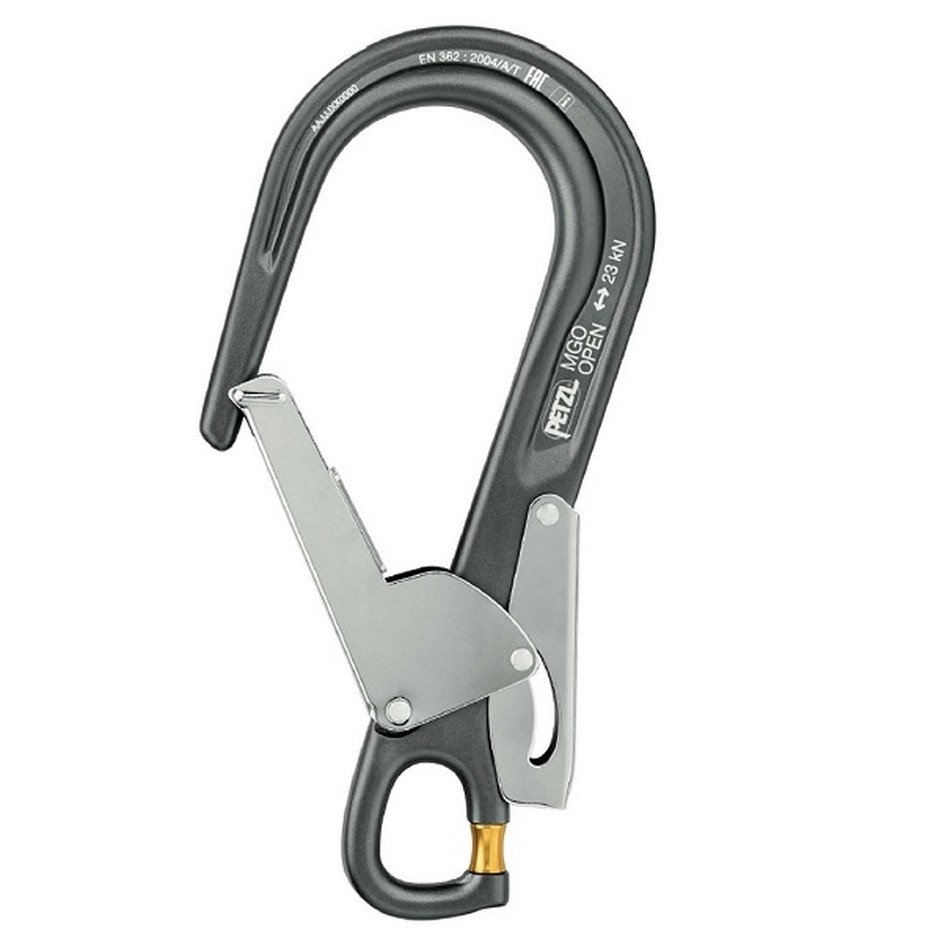 De Petzl MGO OPEN 60 is een automatisch vergrendelende, directionele karabiner met een grote opening en een extra poort voor directe bevestiging aan diverse soorten verbindingslijnen. Ontworpen voor professioneel gebruik bij toegangstechniek, bouw en industriële werkzaamheden waarbij aansluiting op metalen constructies, grote staalkabels of buizen vereist is. Het poortsysteem maakt het mogelijk beschadigde lanyards te vervangen zonder de karabiner te verwijderen, wat efficiëntie en duurzaamheid verhoogt. Gecertificeerd conform EN 362 en andere internationale normen.