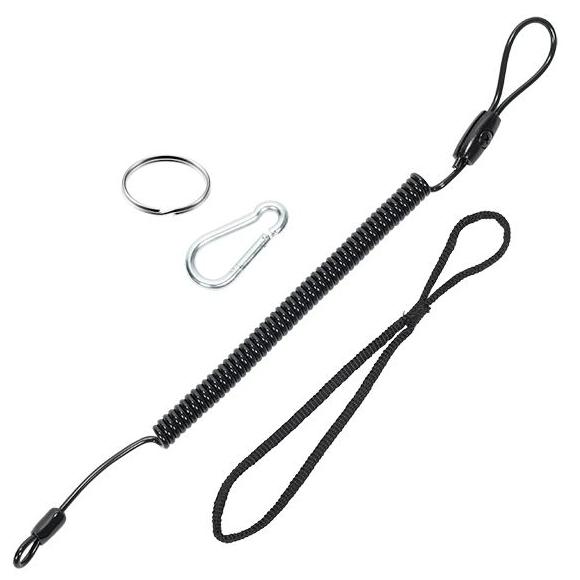 De Scaff Gereedschapslijn Spiraalkabel met 2 karabijnhaken is ontwikkeld voor het tijdelijk zekeren van gereedschap bij werkzaamheden op hoogte. Geschikt voor professionele gebruikers in industrie, bouw of rope access, waar veiligheid en werkefficiëntie centraal staan. De lijn is vervaardigd uit een sterke polyurethaan gecoate spiraalkabel die zelfs na intensief gebruik terugveert naar de oorspronkelijke vorm. Voorzien van een karabijnhaak aan elk uiteinde voor snelle bevestiging van bijvoorbeeld steigerratels of hamers. De lengte varieert van 40 cm in rust tot maximaal 155 cm uitgerekt.