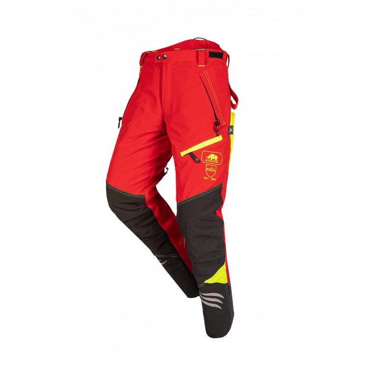 Chainsaw protection class 1 (20 m/s), type A, six-layer frontal protection, reinforced waterproof zones and protection against moisture absorption.