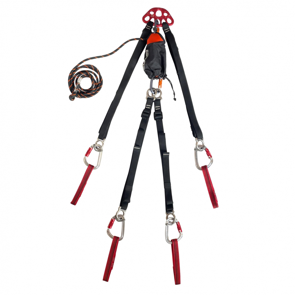De Skylotec ultraFLEX PRO is een transportophanging ontworpen voor veeleisende reddings- en tactische toepassingen, vooral binnen de professionele veiligheidsbranche. Het systeem maakt het mogelijk om horizontale en verticale patiëntpositionering flexibel aan te passen onder belasting. Dankzij traploos verstelbare hellingshoeken en afzonderlijke asinstellingen (links/rechts) is optimale positionering tijdens reddingsprocedures eenvoudig te realiseren. De ultraFLEX PRO is in lengte in te korten, waardoor deze ook inzetbaar is bij beperkte ruimte of hoogte. Standaard wordt een optioneel katrolsysteem meegeleverd.