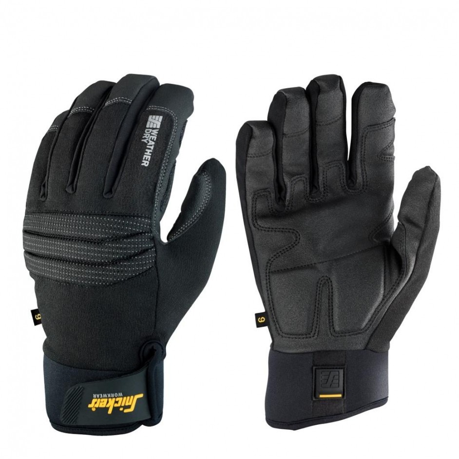 De Weather Dry Gloves van Snickers Workwear zijn comfortabele, stevige handschoenen gemaakt voor slechte weersomstandigheden. Ze zijn gemaakt van polyurethaan op de handpalm en een waterdichte voering zodat je niets merkt van de regen en kou. De binnen voering is geborsteld voor een zacht en comfortabel gevoel.