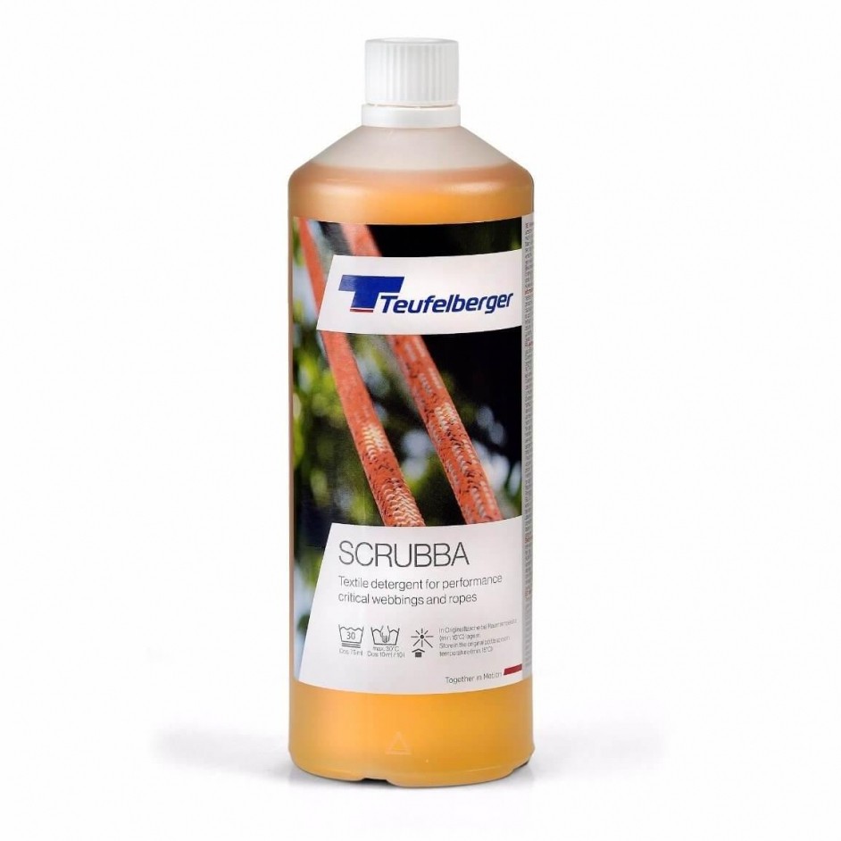 Het Teufelberger Scrubba wasmiddel is speciaal ontwikkeld om vezeltouwen zoals klimtouwen (statisch en dynamisch) te reinigen. De samenstelling van de Scrubba verlengt de levensduur van het touw zonder afbreuk te doen aan de kwaliteit.